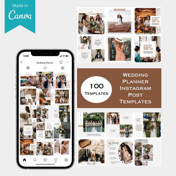 Make wedding planning a breeze with this stunning set of 100 Wedding Planner Canva Instagram Post Templates! Designed for wedding planners, event coordinators, and bridal businesses, these customizable templates help you create elegant and engaging Instagram posts with ease.
