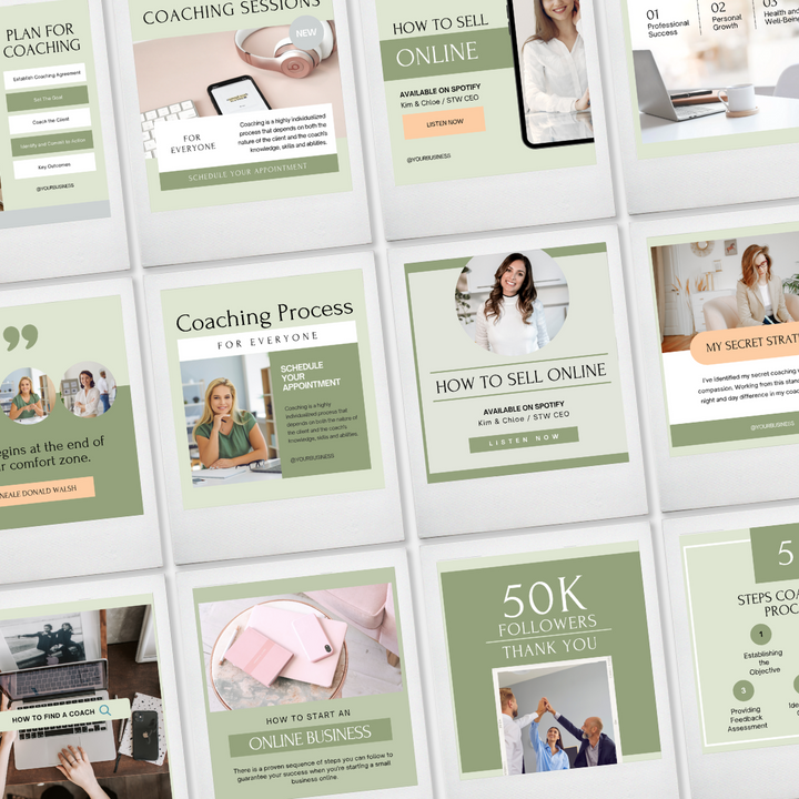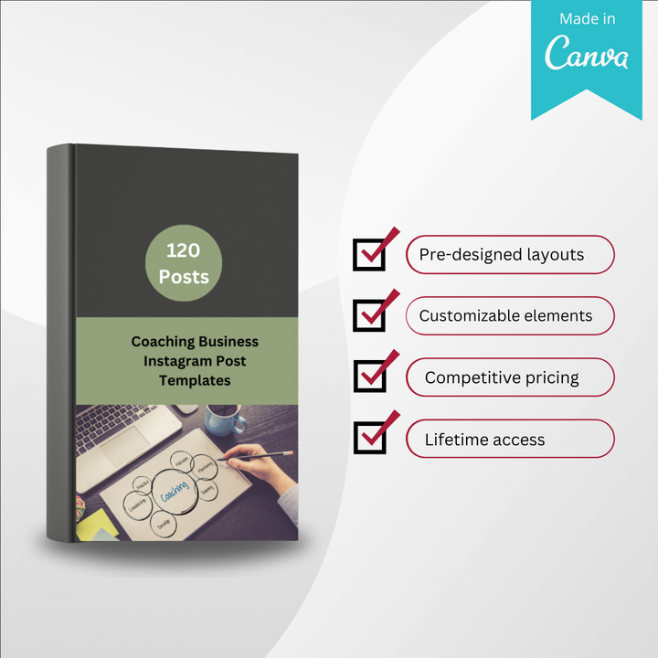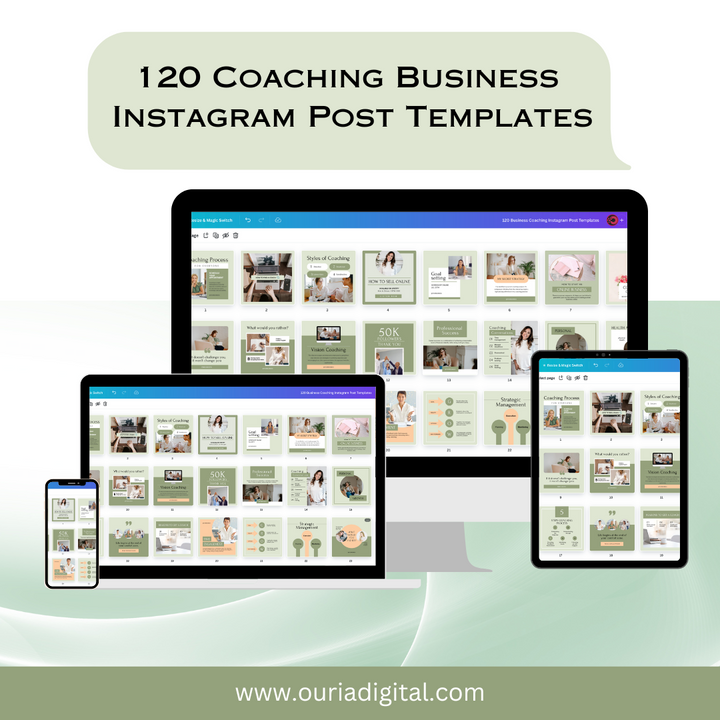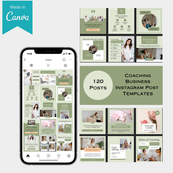 - 120 Unique Templates: A diverse range of designs to suit any coaching niche, from life coaching to business coaching.